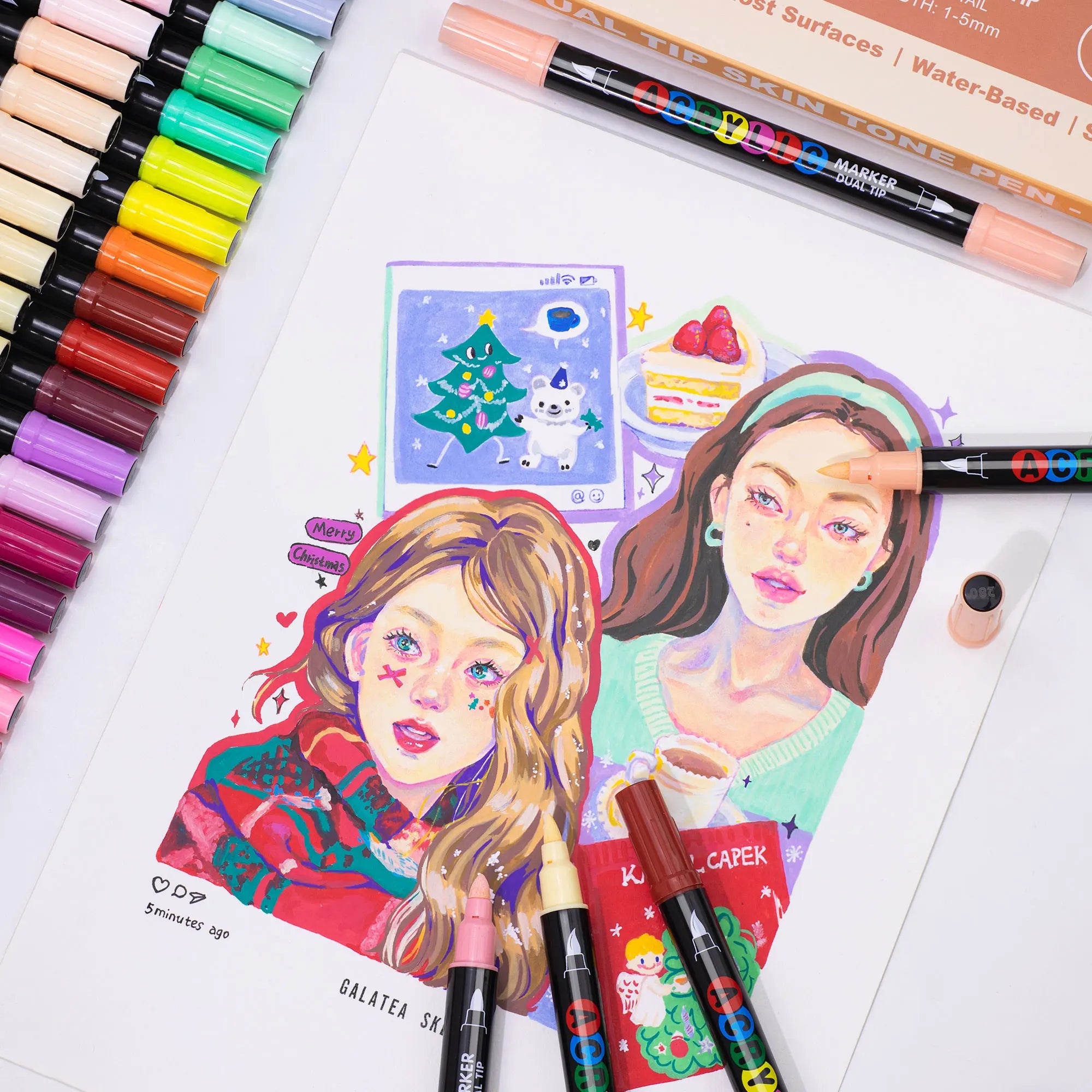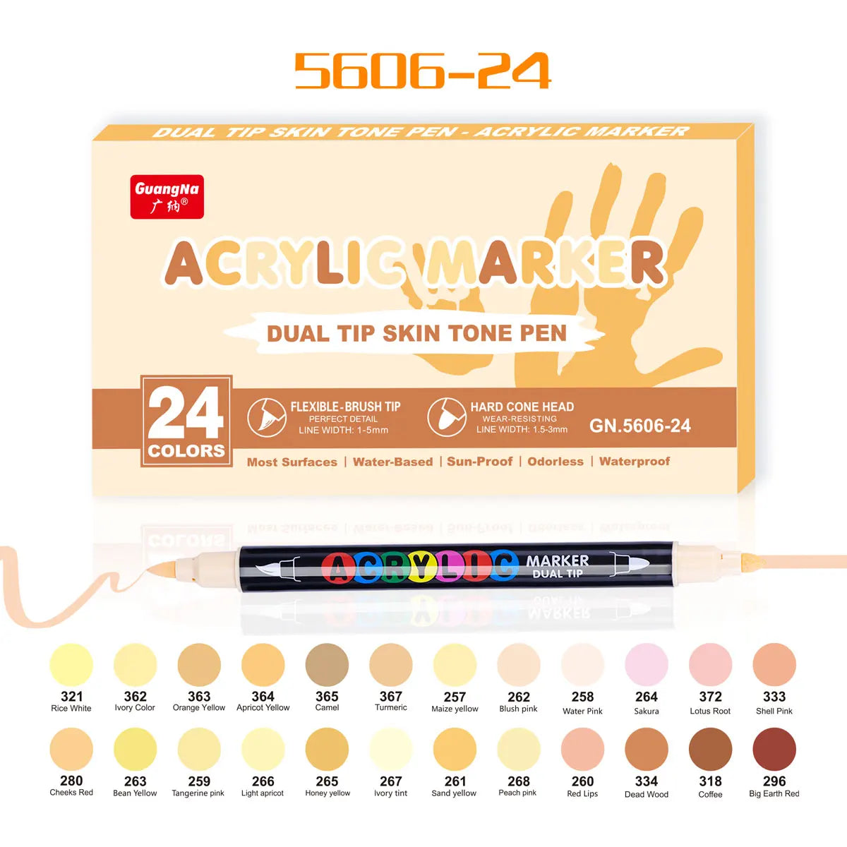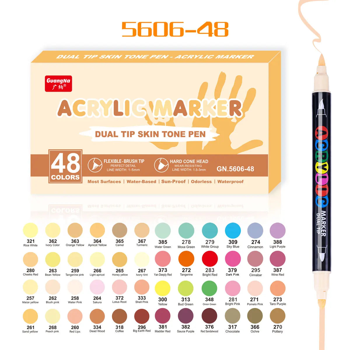 24/48 Colors Skin Tone Markers Pens,Portrait Markers,Dual Tip Brush & Chisel, Acrylic Markers,Waterproof Pen Soft brush Nib Skin