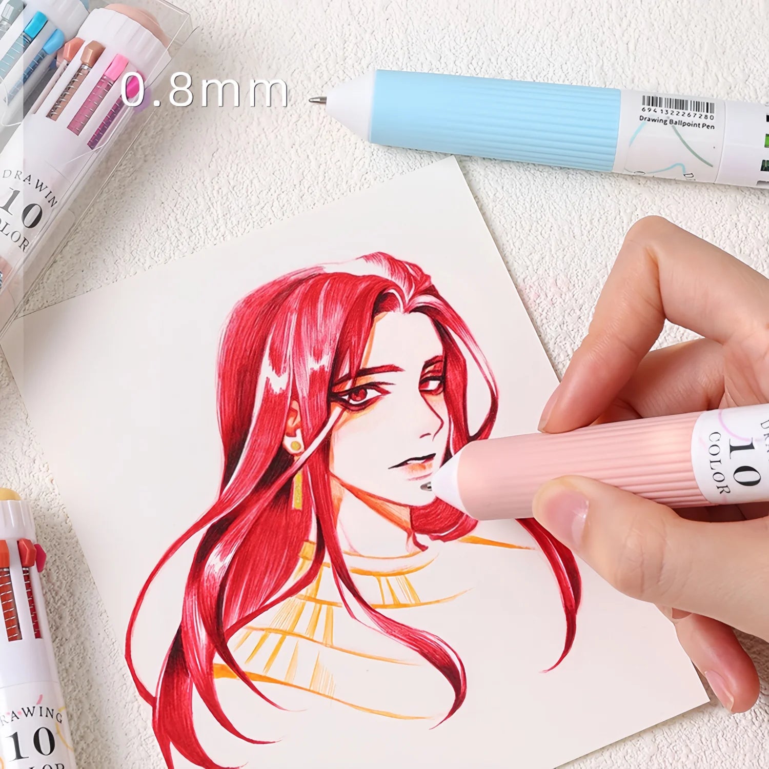28 Colors Multicolor Ballpoint Pen Set 0.8mm, 10-in-1 Colored Pens Fine Point Retractable Ballpoint Pens for Office School