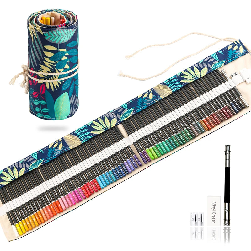 72Pcs Color Pencil Premium Artist Colored Pencil Set Handmade Canvas Pencil Wrap Extra Accessories Included Holiday gift Pencils