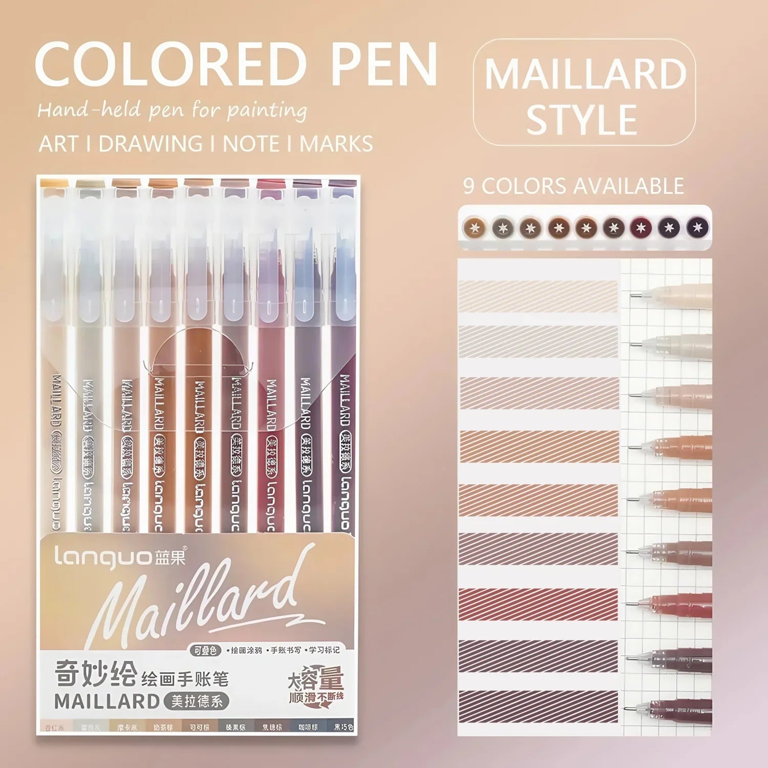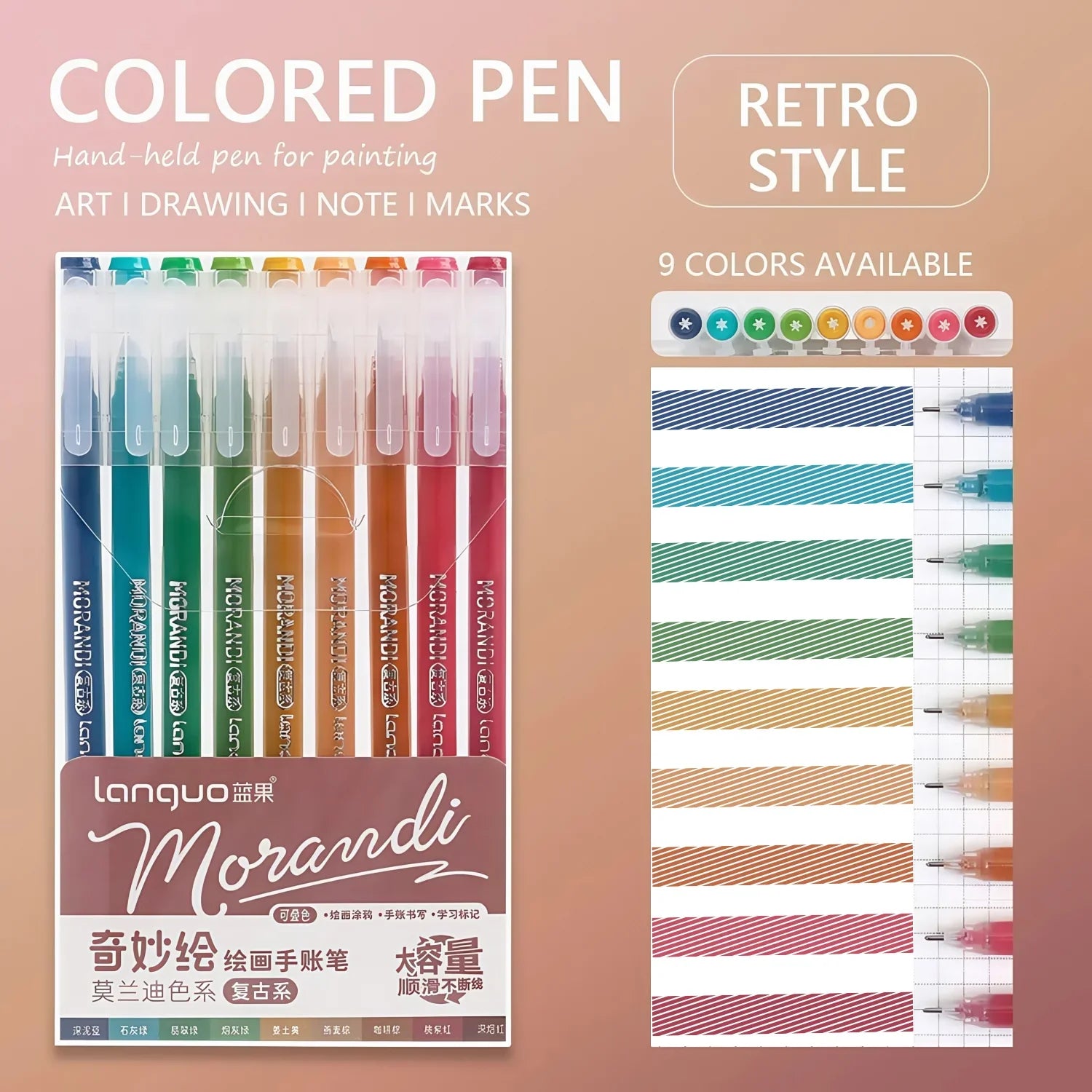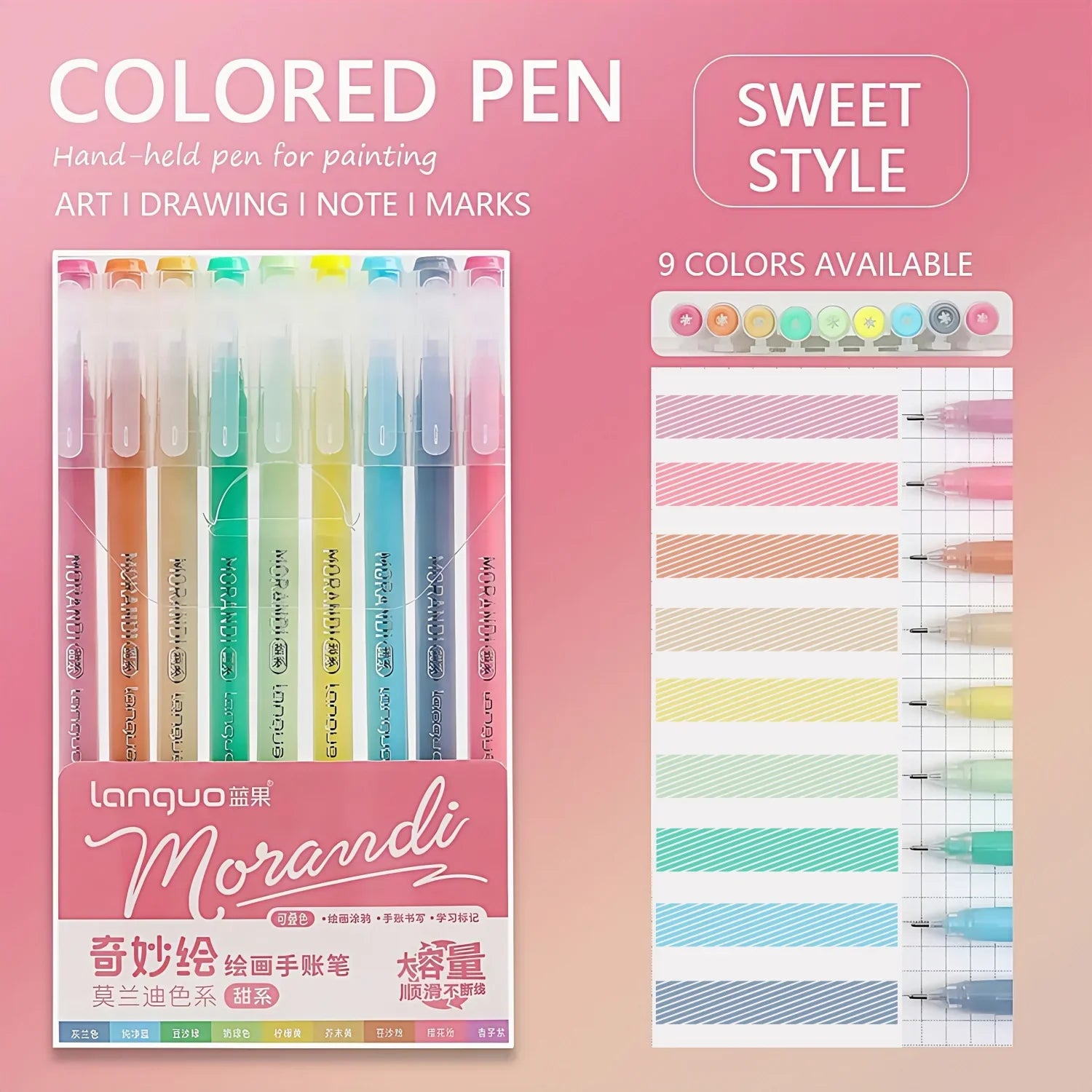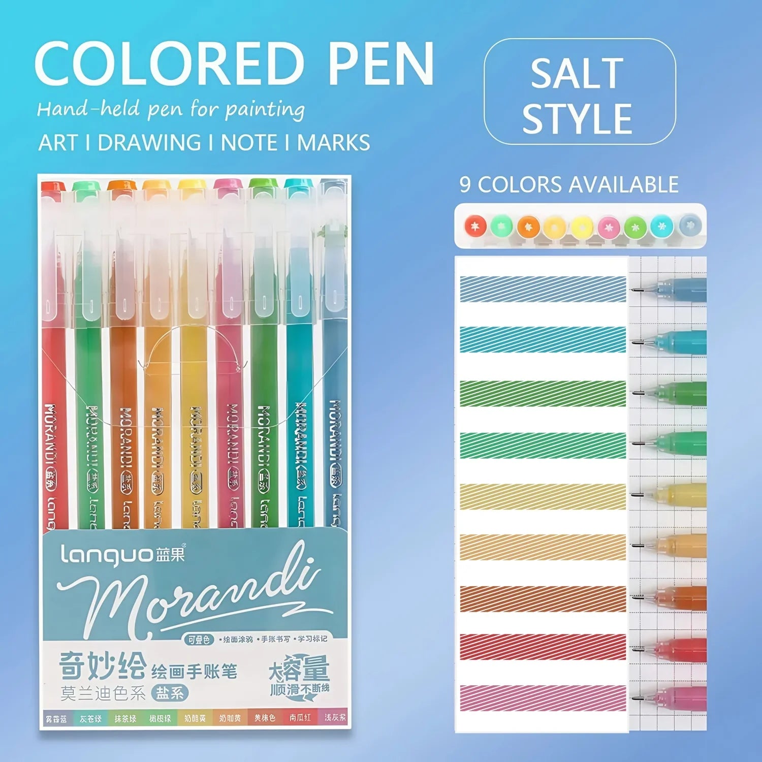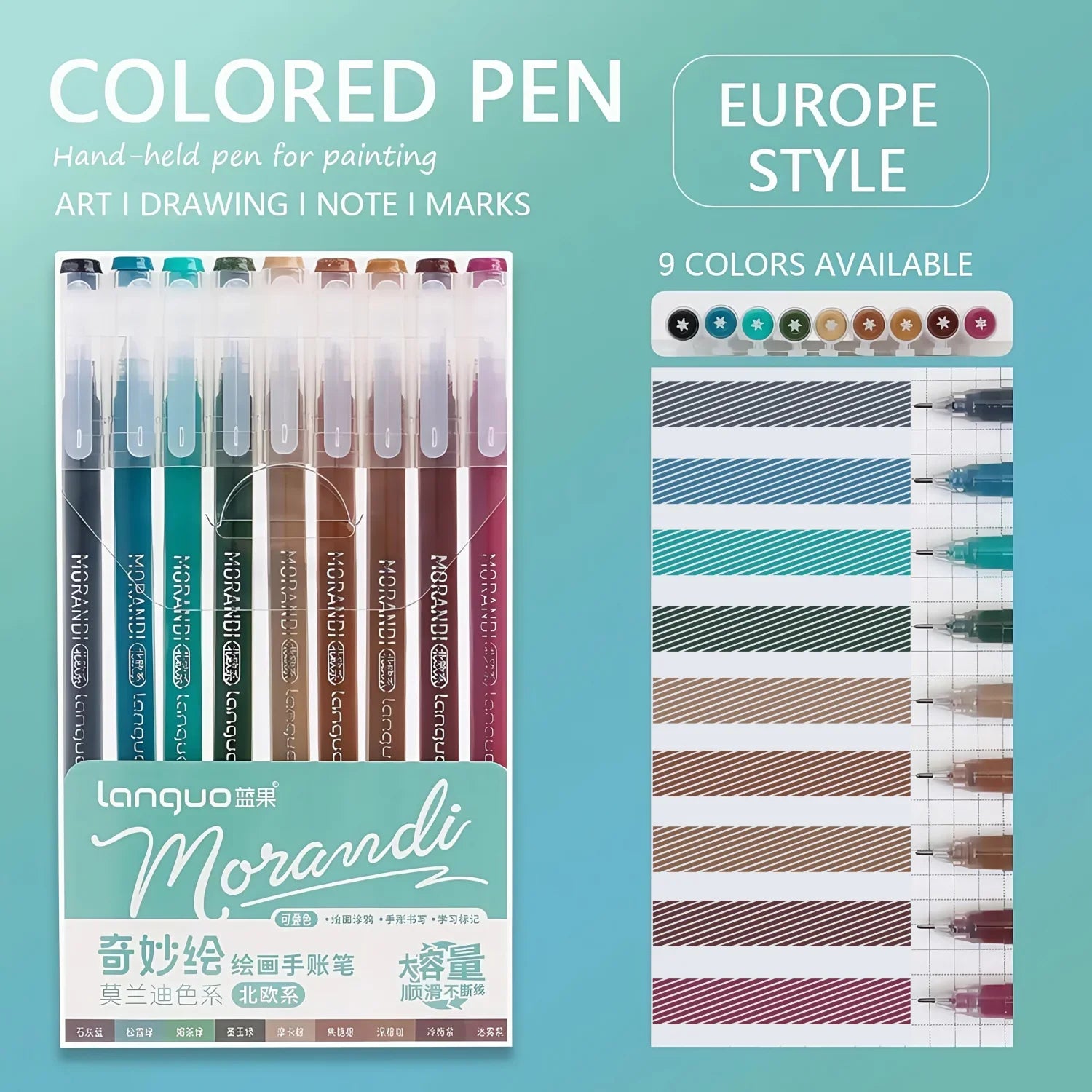 9Pcs/Set Multi-Color Pen With 18 Professional Color series Large Capacity Color Handbook Pen Morandi Color Student Marker Pen
