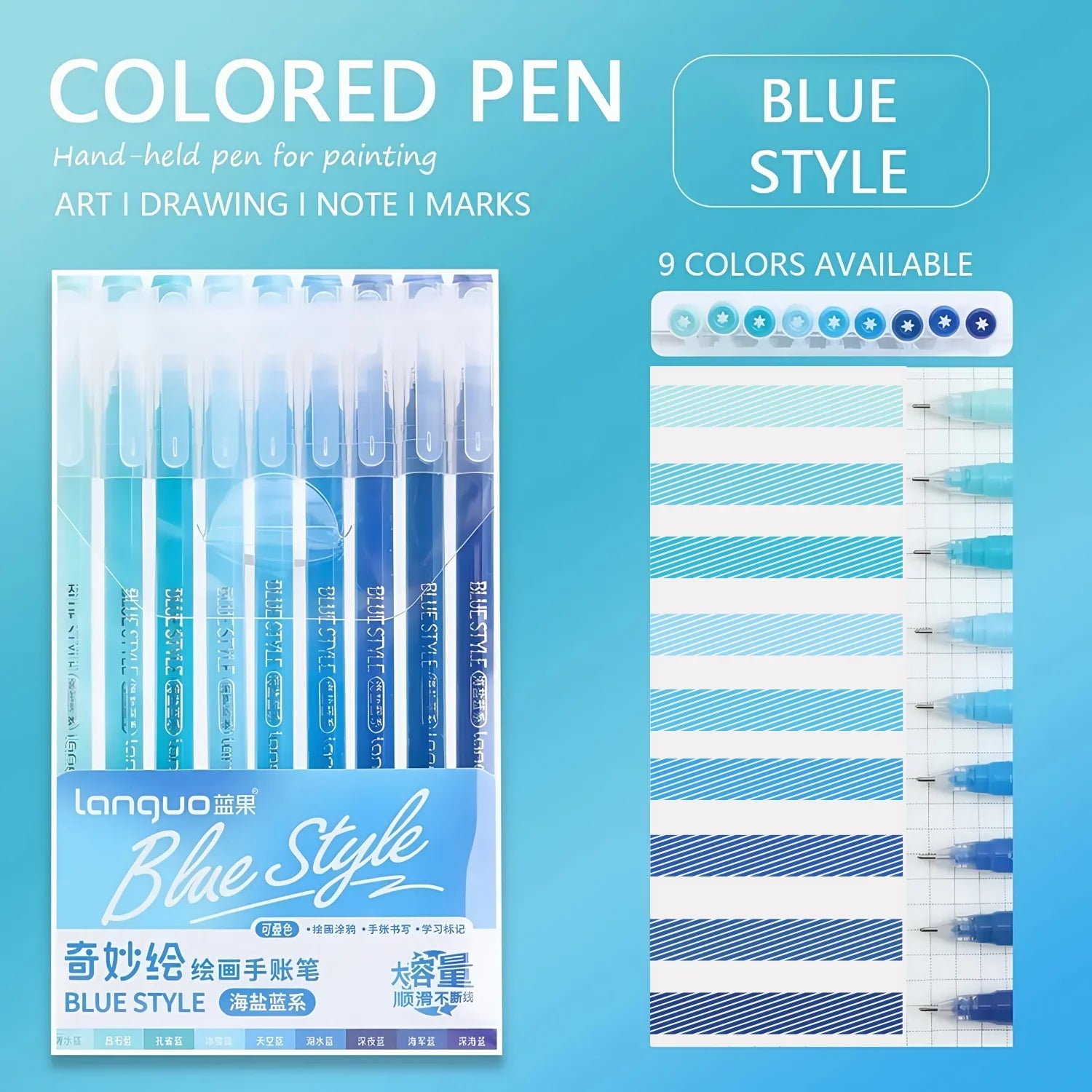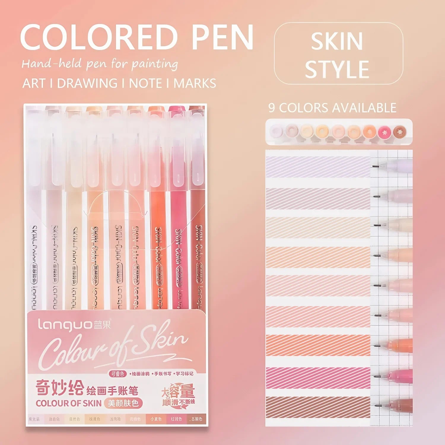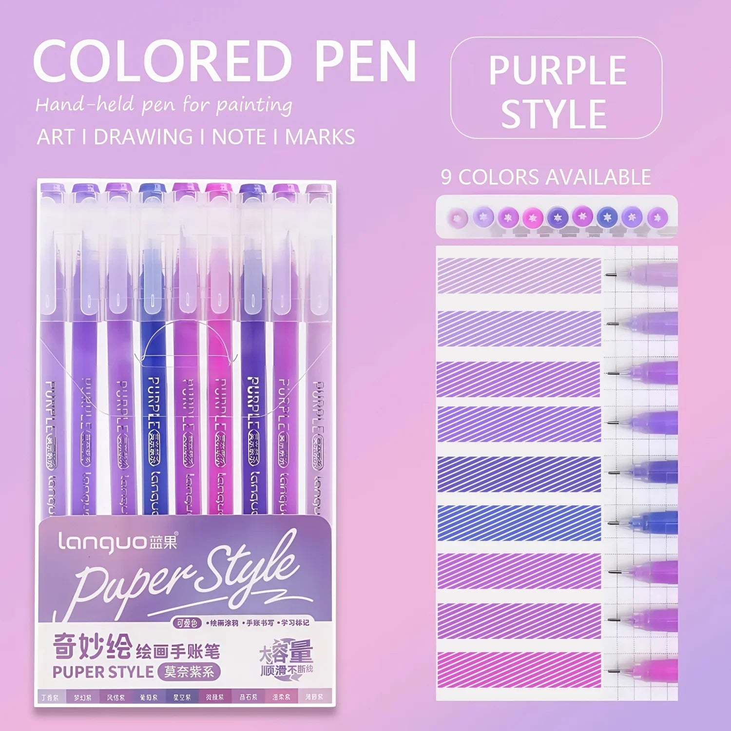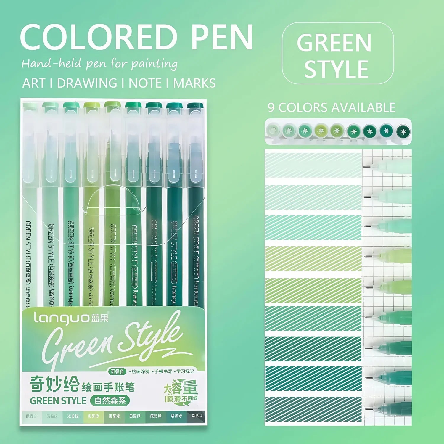 9Pcs/Set Multi-Color Pen With 18 Professional Color series Large Capacity Color Handbook Pen Morandi Color Student Marker Pen
