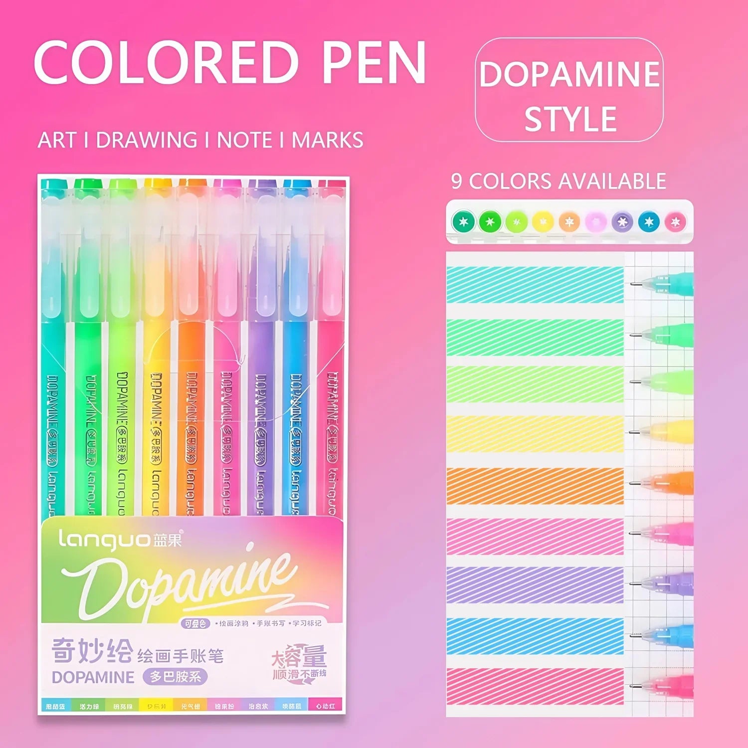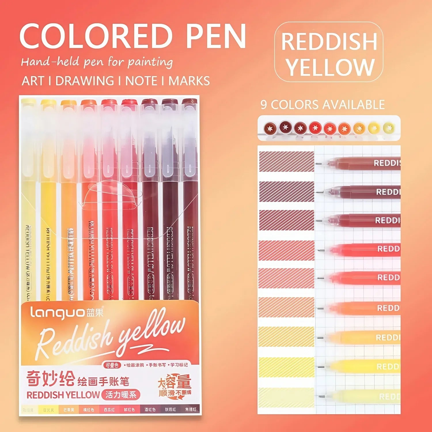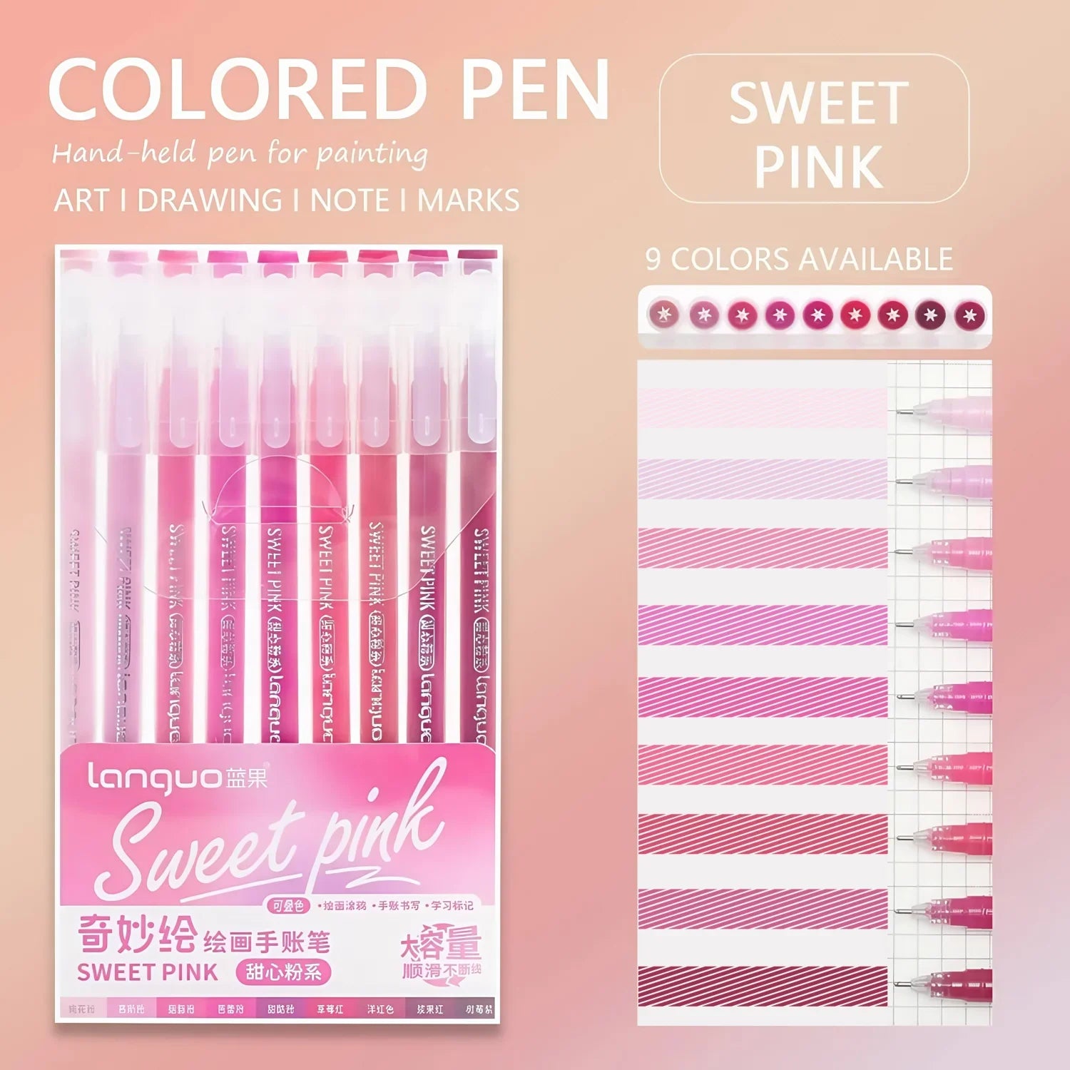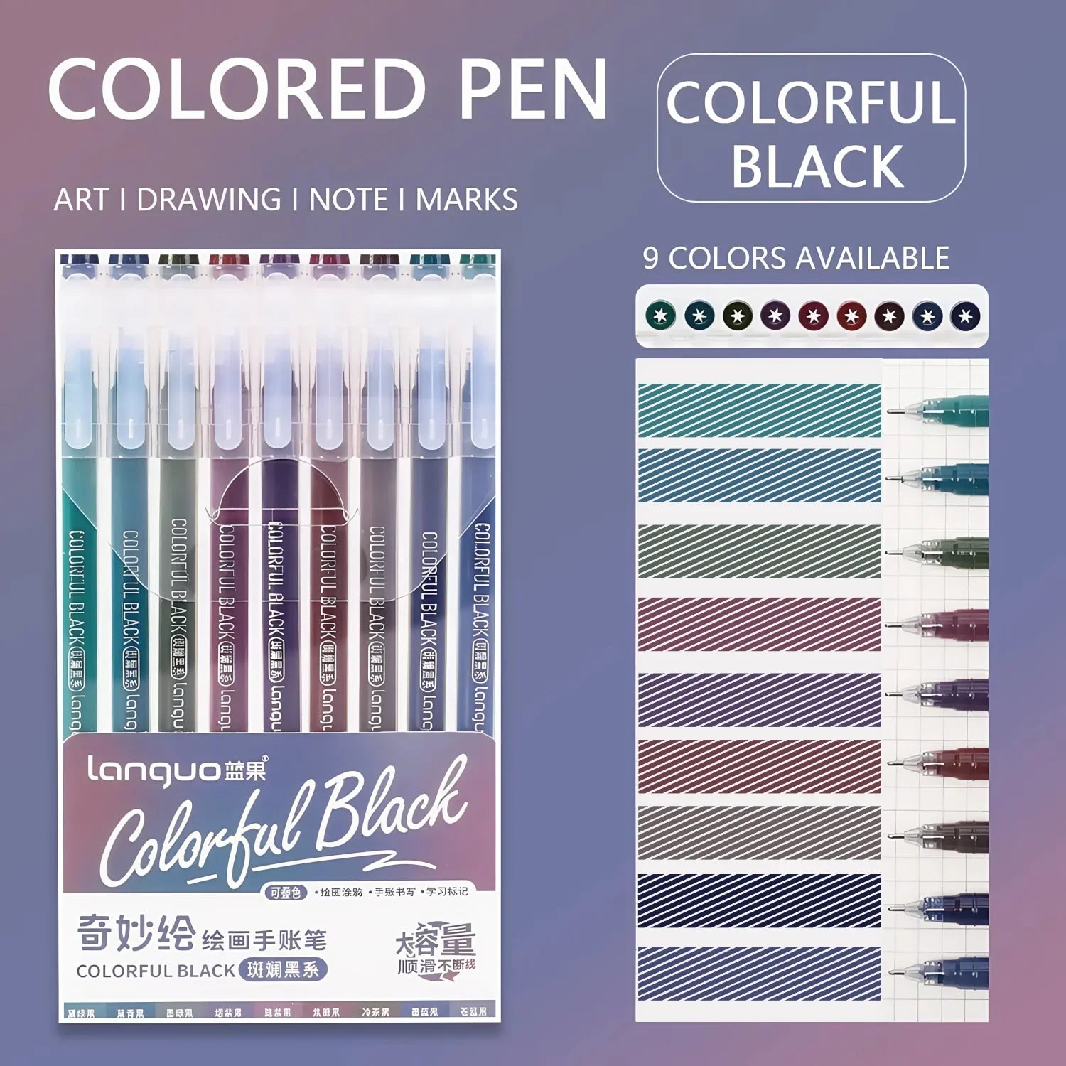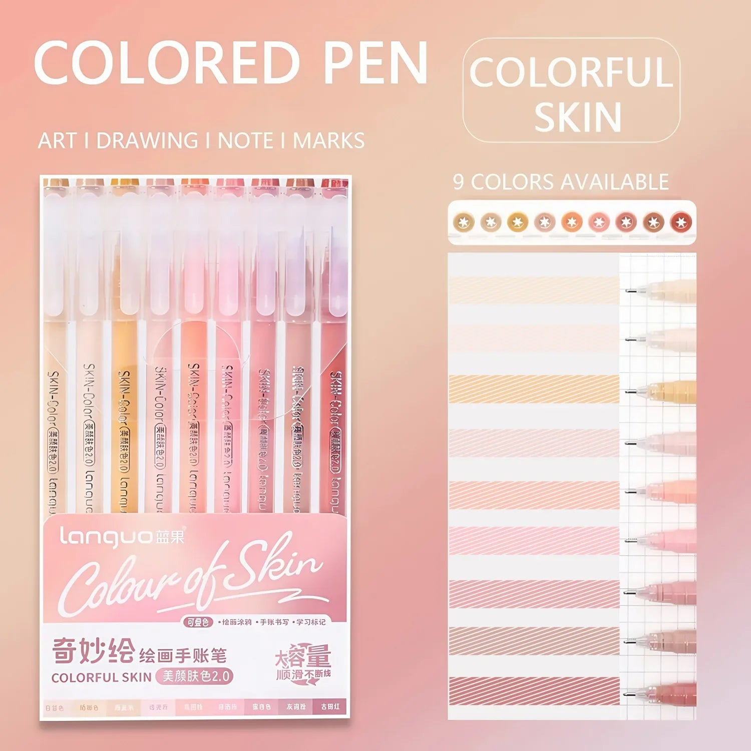 9Pcs/Set Multi-Color Pen With 18 Professional Color series Large Capacity Color Handbook Pen Morandi Color Student Marker Pen