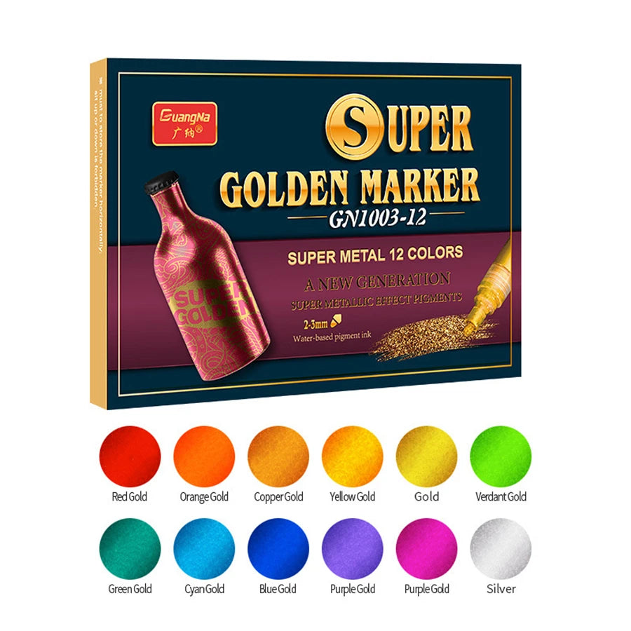 12/18Colors Vibrant Color Acrylic Paint Markers - Metallic Sparkle Art Glitter Pens for Versatile Crafting on Scrapbook, Rock