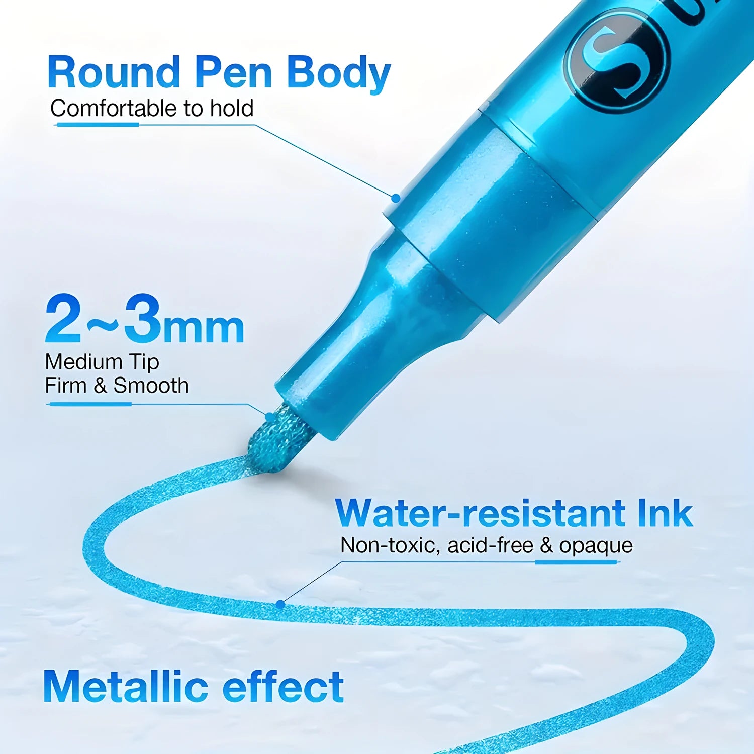 12/18 Colors Vibrant Color Acrylic Paint Markers - Metallic Sparkle Art Glitter Pens for Versatile Crafting on Scrapbook, Black Paper, Rock, Ceramic, Glass, Wood, Fabric, Canvas, Mugs, and Christmas Crafts Projects