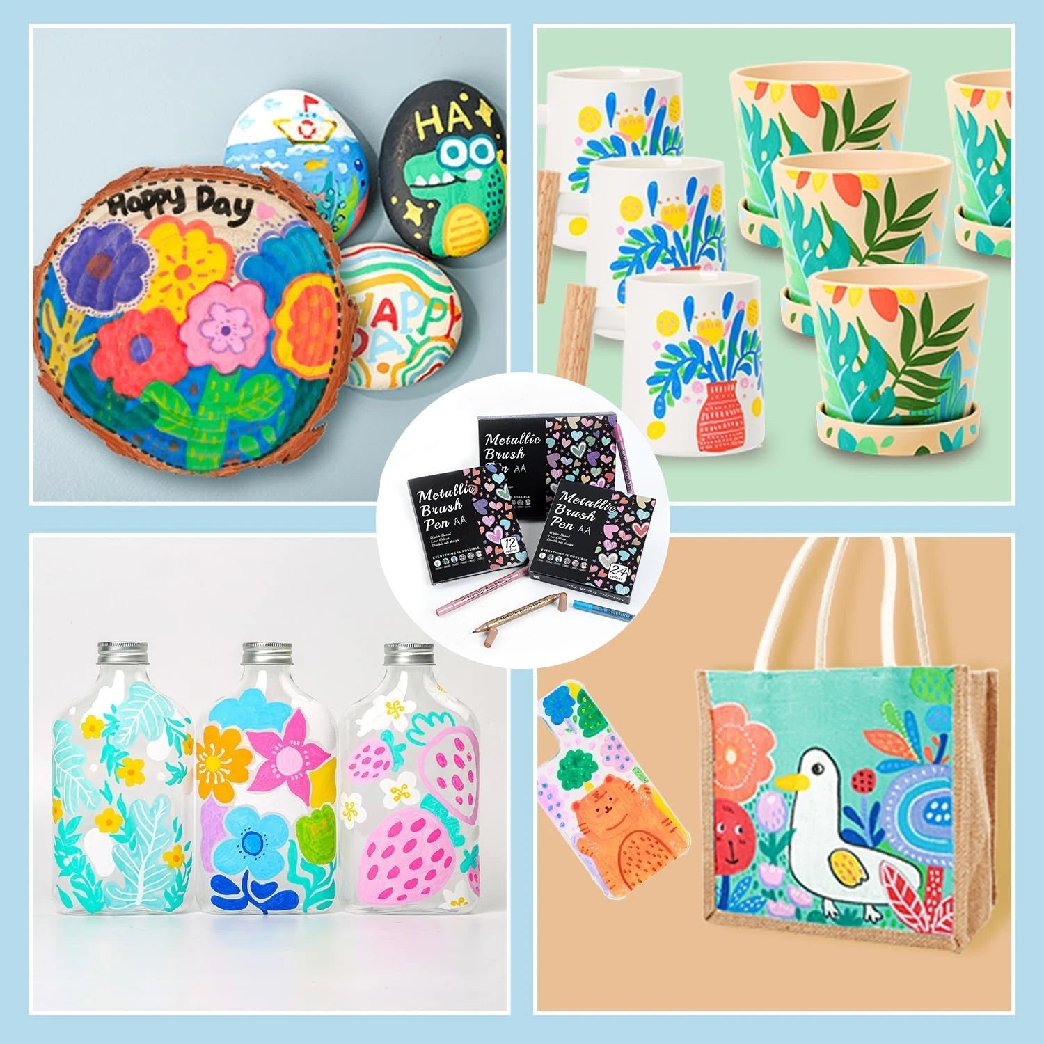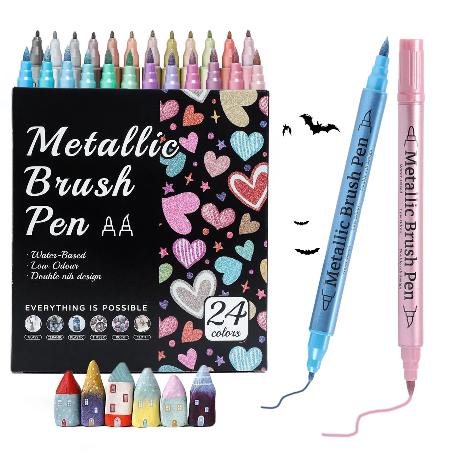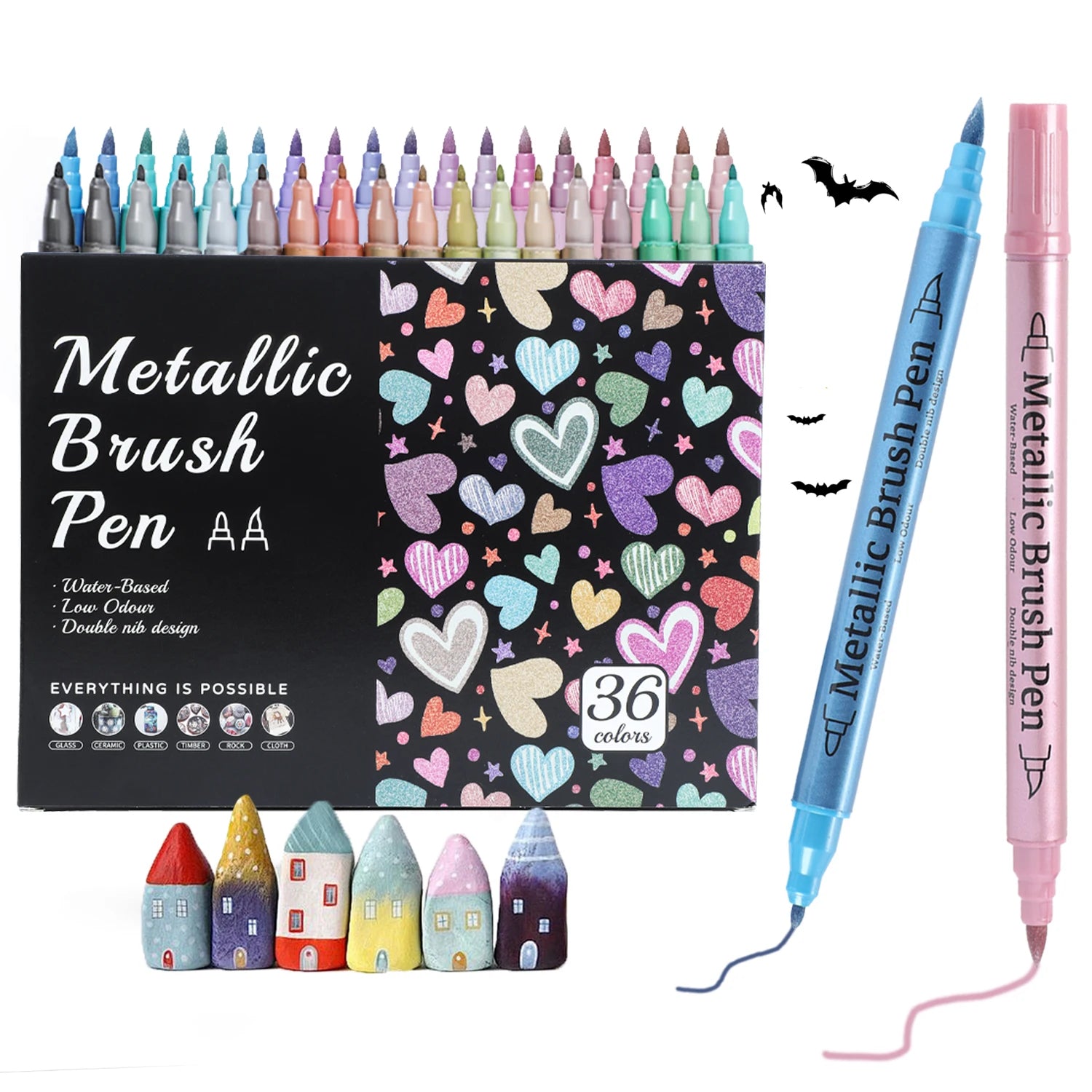 12/24/36Colors Soft Brush Metallic Paint Marker Set,Fine Tip & Brush Tip For DIY Painting Projects On Rocks, Wood, Ceramics