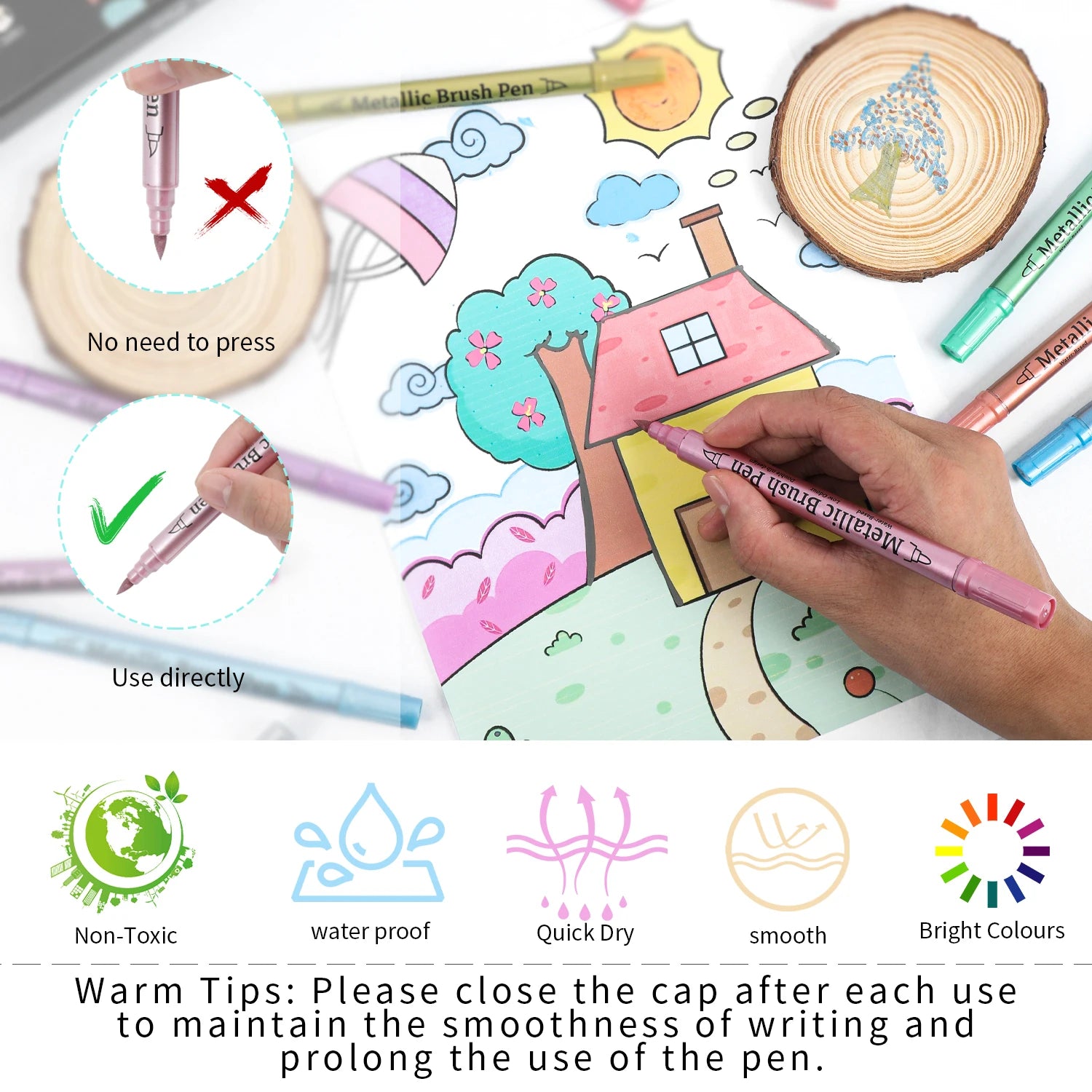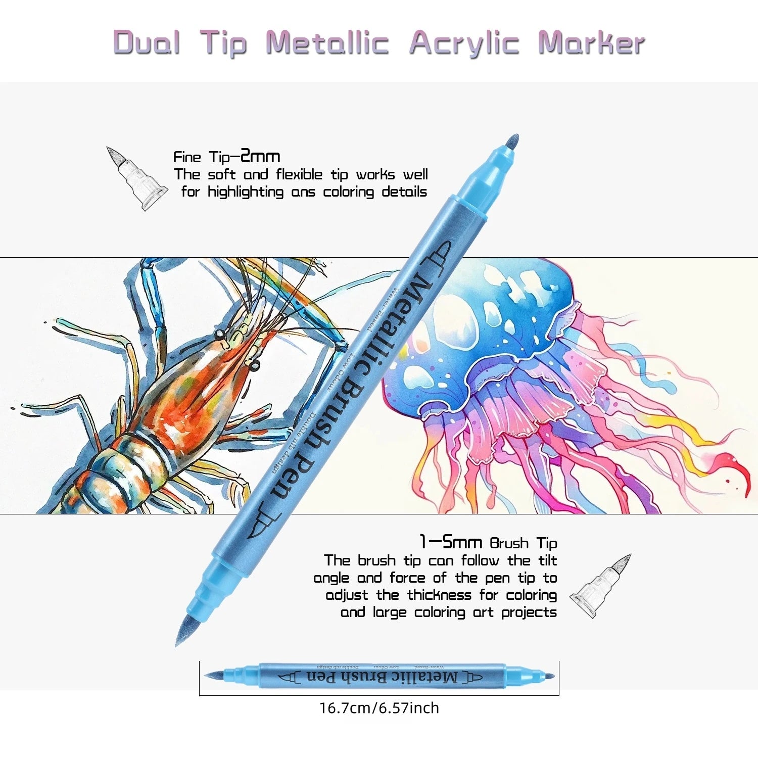 Soft Brush Metallic Paint Marker Set, Double-Ended Fine Tip & Brush Tip, Markers Are Suitable For DIY Painting Projects On Rocks, Wood, Ceramics, Canvas, Etc., Vibrant Colours Are Suitable For Arts And Crafts.
