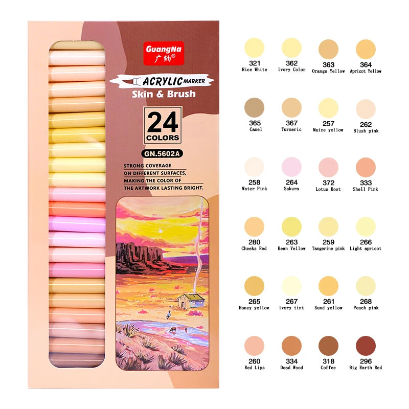 12/24 Colors Straight Liquid Soft Bush Markers Skin Tone Markers Pens,Nylon Soft head Acrylic Markers,Waterproof Pen Soft brush