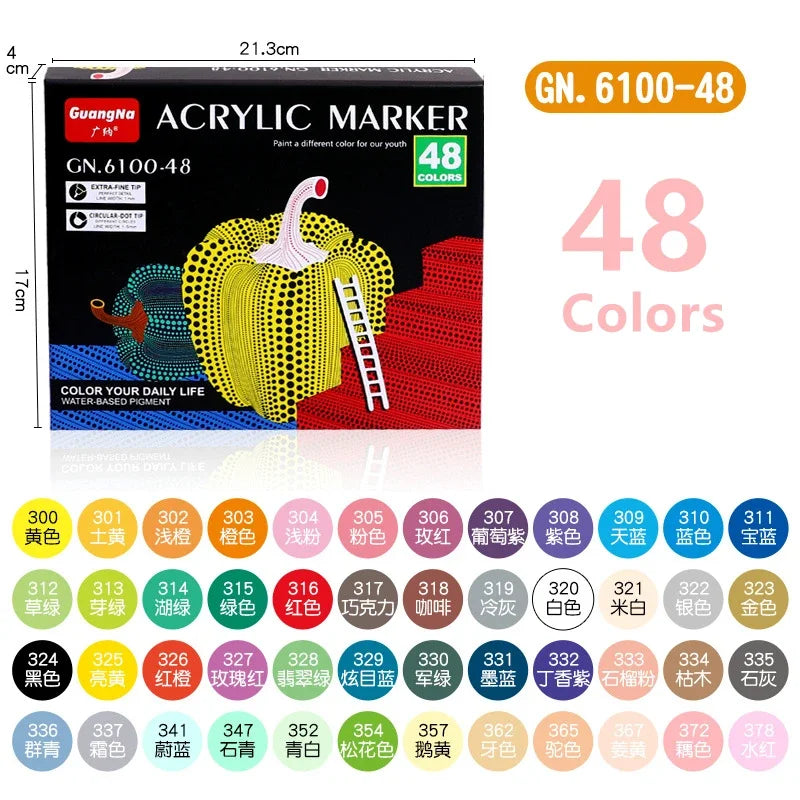 12-48 Colors Acrylic Paint Marker Pens Extra Fine and Dots Tip, for Rock Painting, Mug, Ceramic, Glass Wood,Making Art Supplies