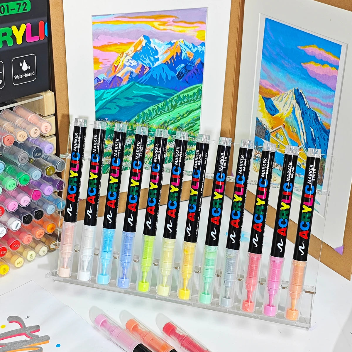 12-72 Soft Brush Markers Set,Acrylic Marker Pens,Rich colors,Flexible tip,Waterproof Pen Soft brush Nib For Glass Stone Metal Glass Wood Plasctic Paper