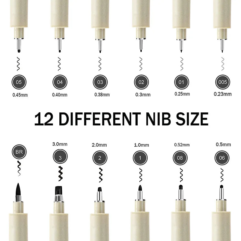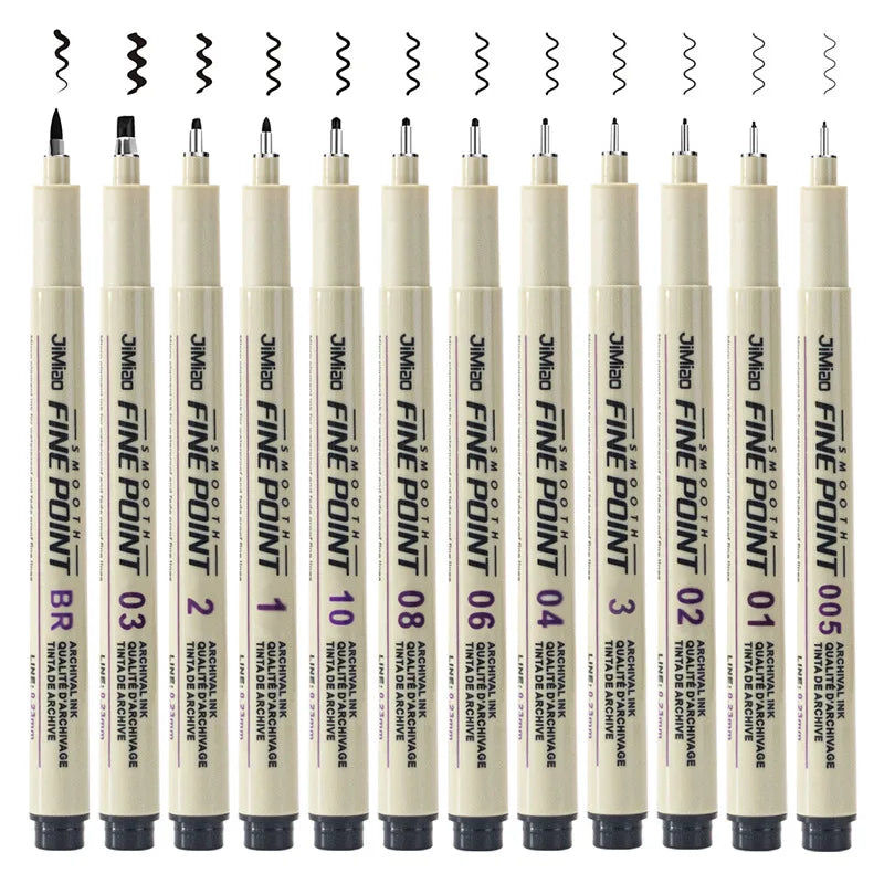 12 Pcs Manga Markers Needle Pen Art Hand-painted Hook Line Pen Sketch Pens Stationery Set Art Supplies Student School Supplies