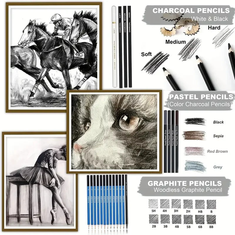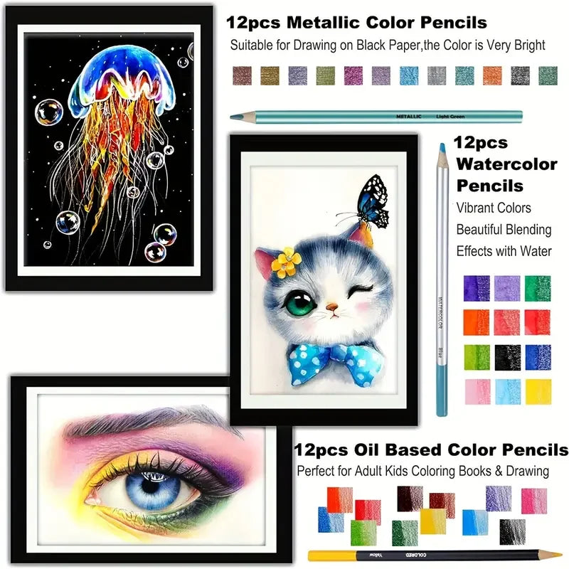 76 Pcs Drawing Set Pro Art Supplies Watercolor, Colored, Graphite, Charcoal, Metallic Pencil, fIdeal for Artists, and Beginners