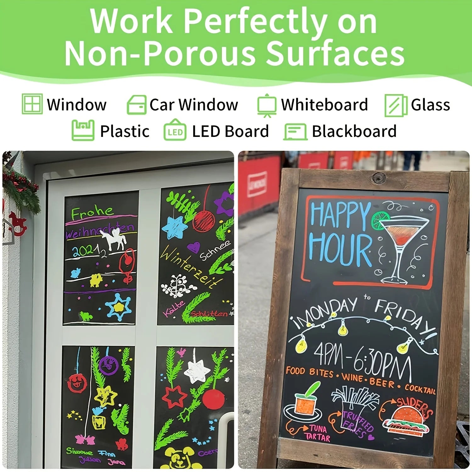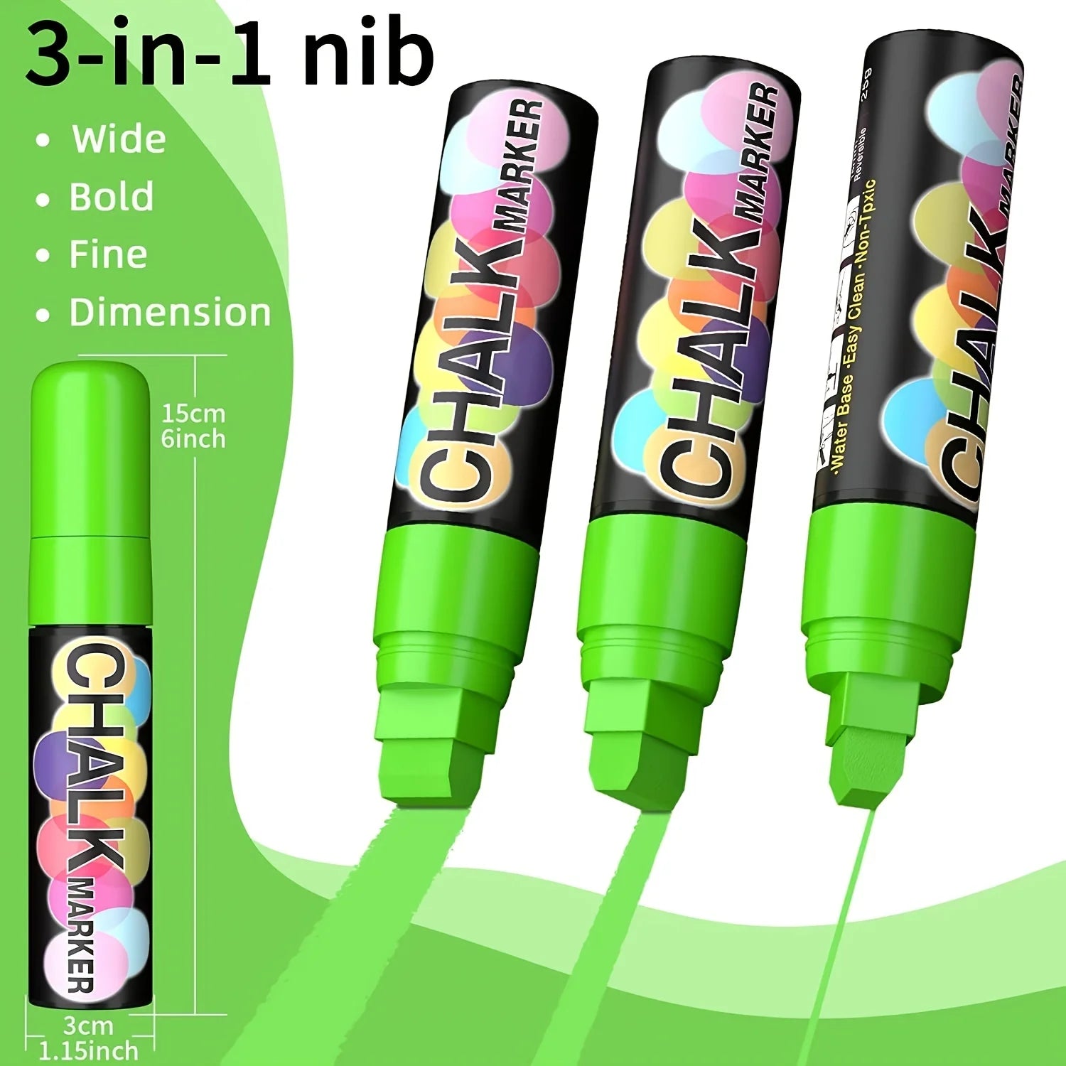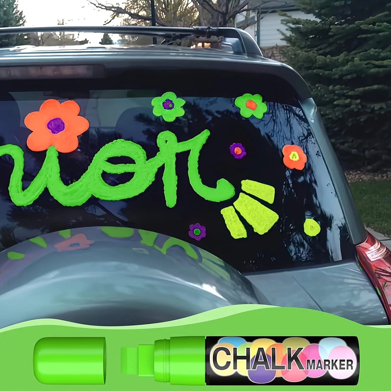 8 Colors Washable Jumbo Chalk Window Markers for Car, 15mm Jumbo Liquid Chalk Markers, Washable & Wet Erase Chalk