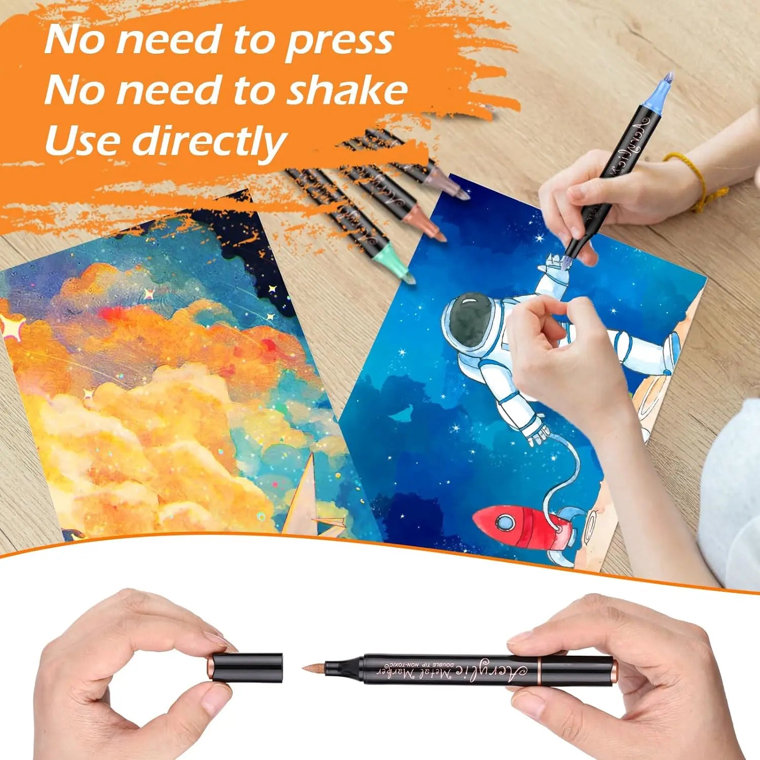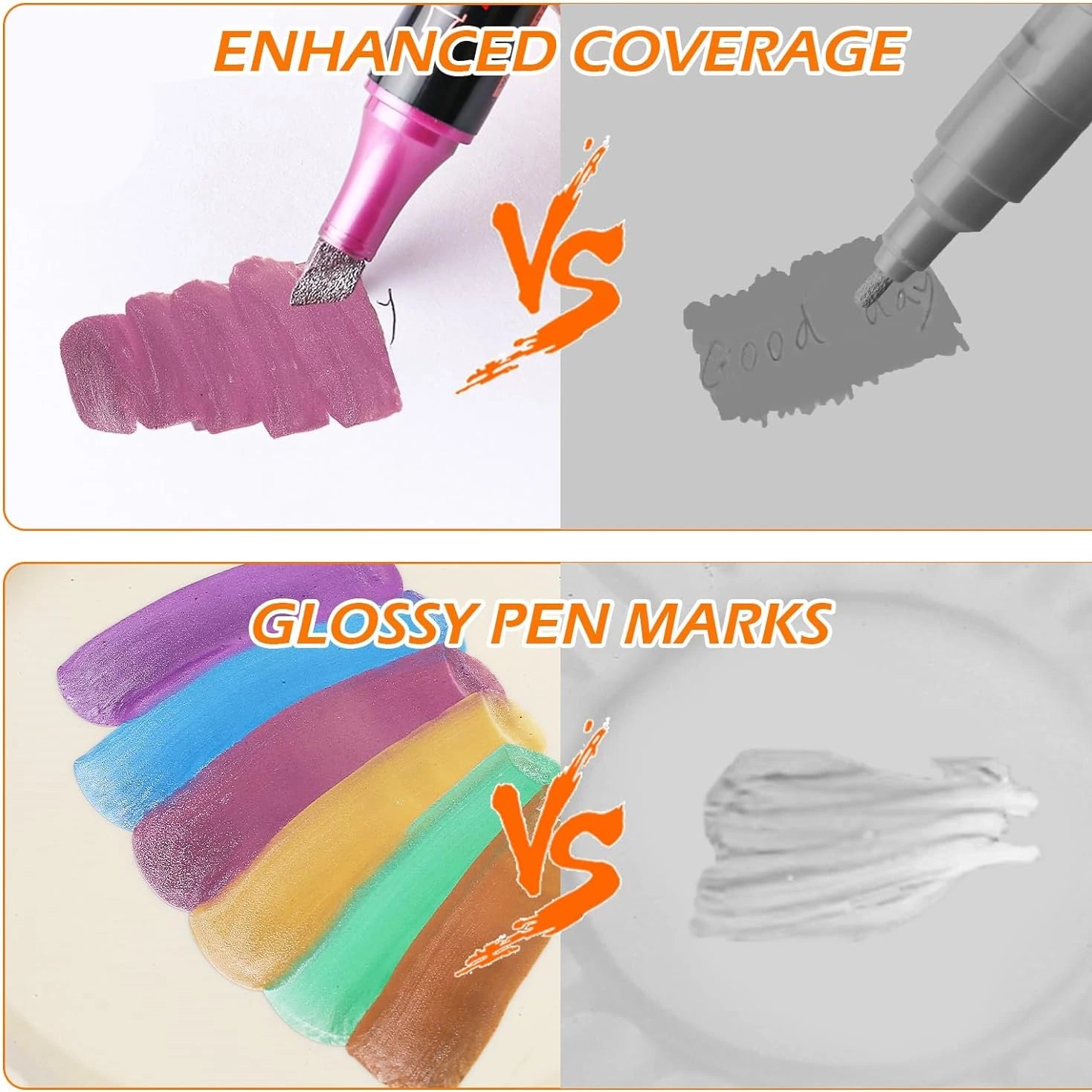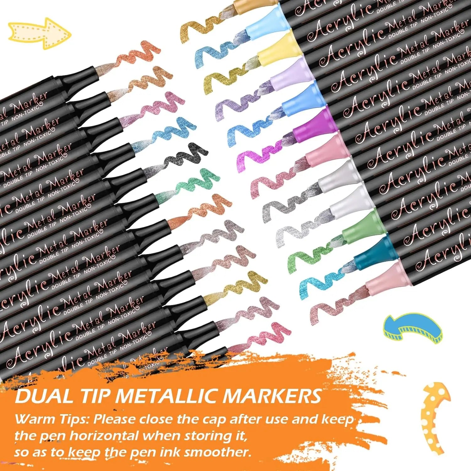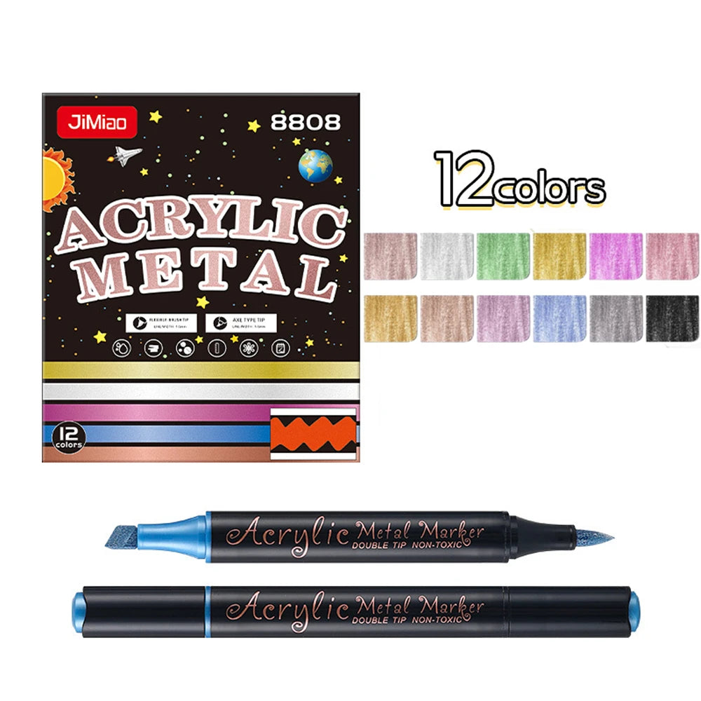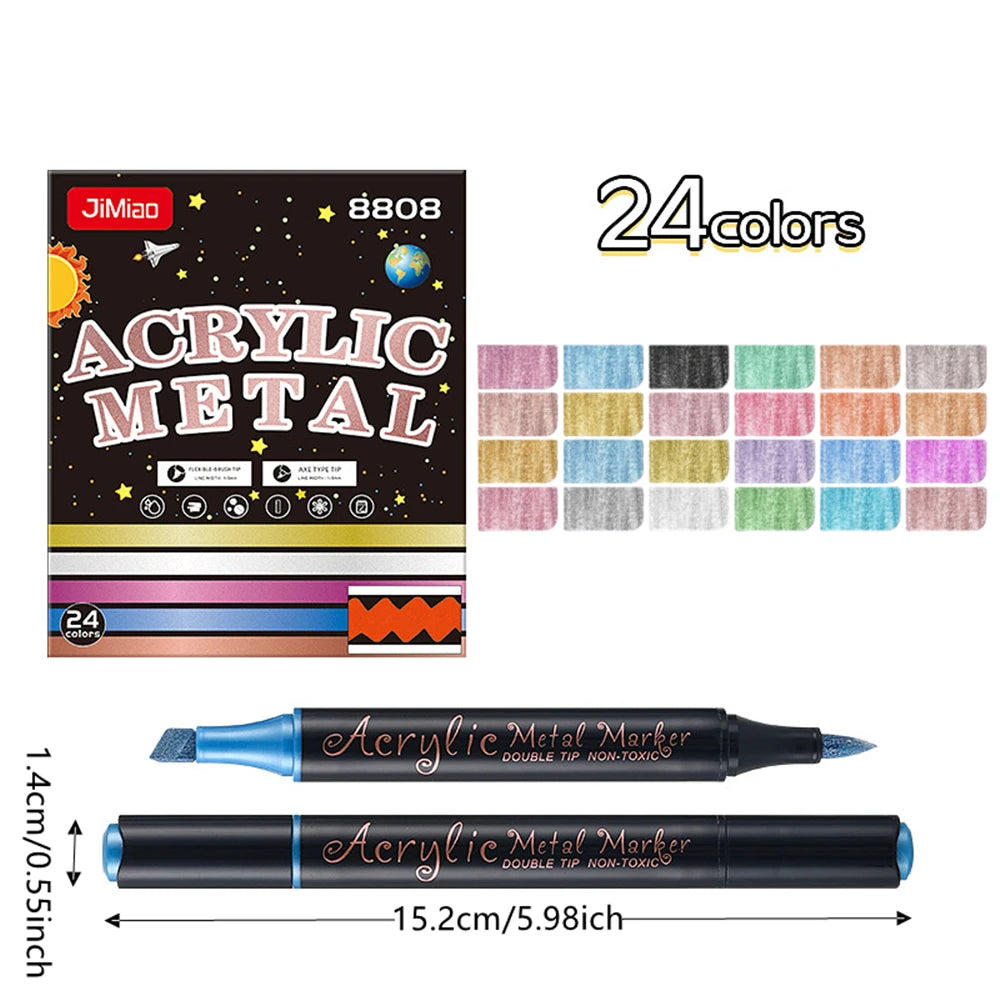 Metallic Paint Markers-12/24 Colors Dual Tip Metallic Paint Pens Acrylic Markers with Brush and Chisel Tip for Wood,Rock,Glass