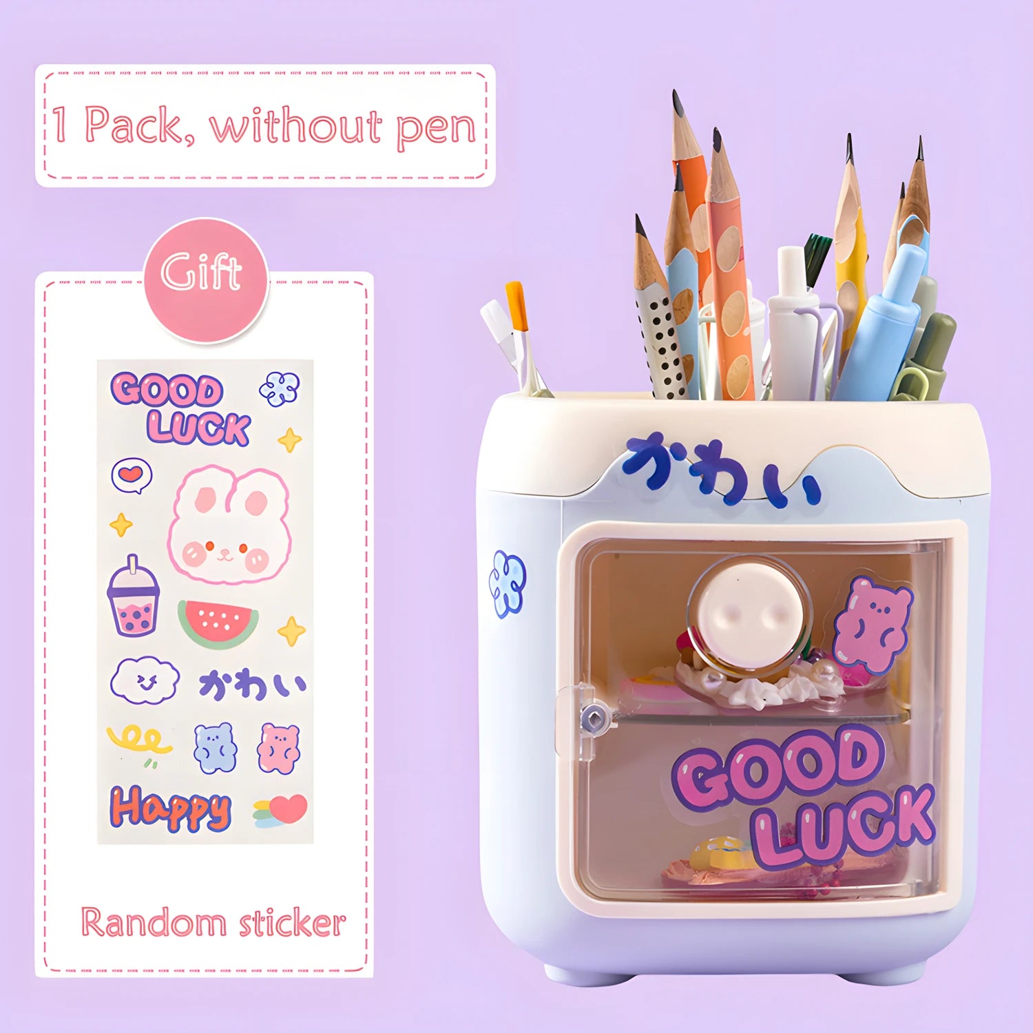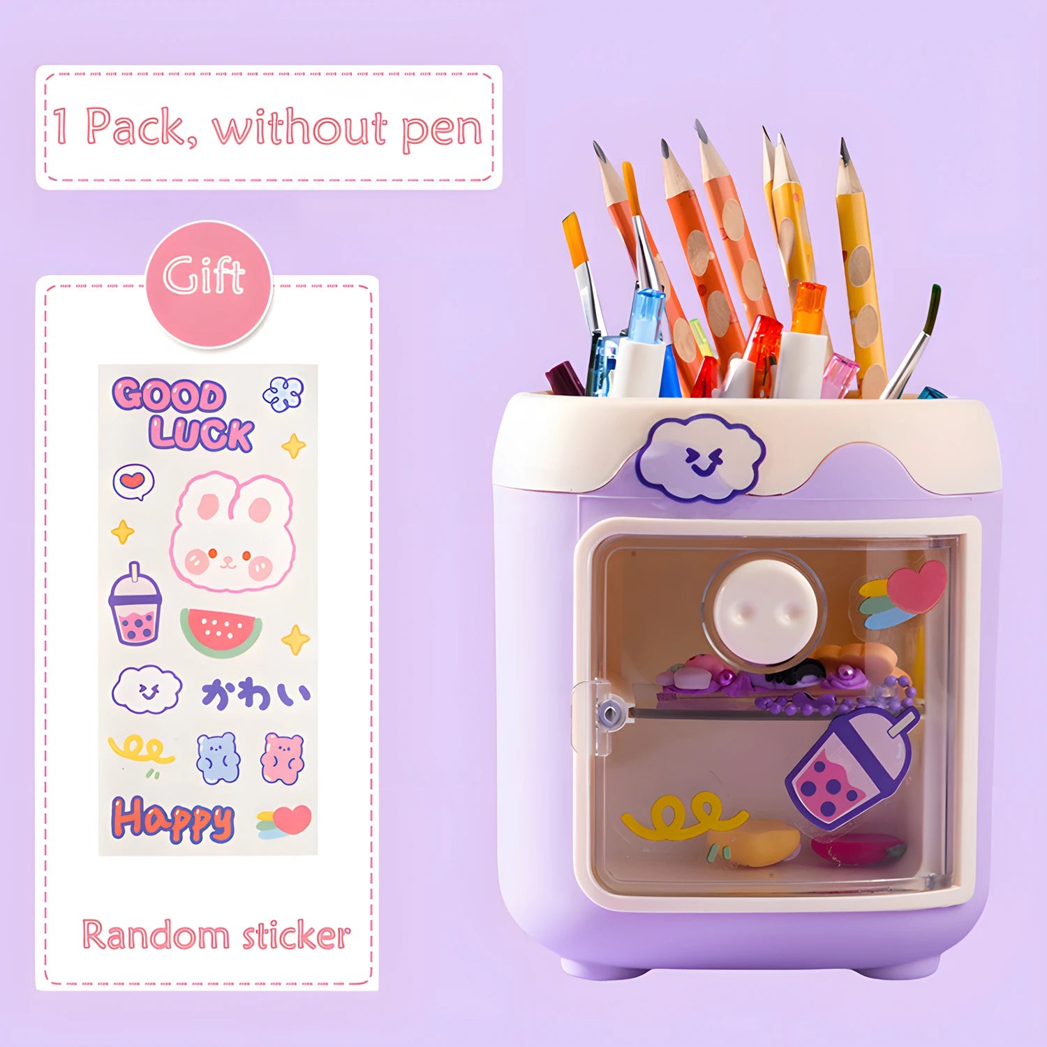 【Lid design】Pen holder built-in small drawer, dustproof design, magnet adsorption, easy to open, simple and convenient, can store erasers, paper clips and other small objects,