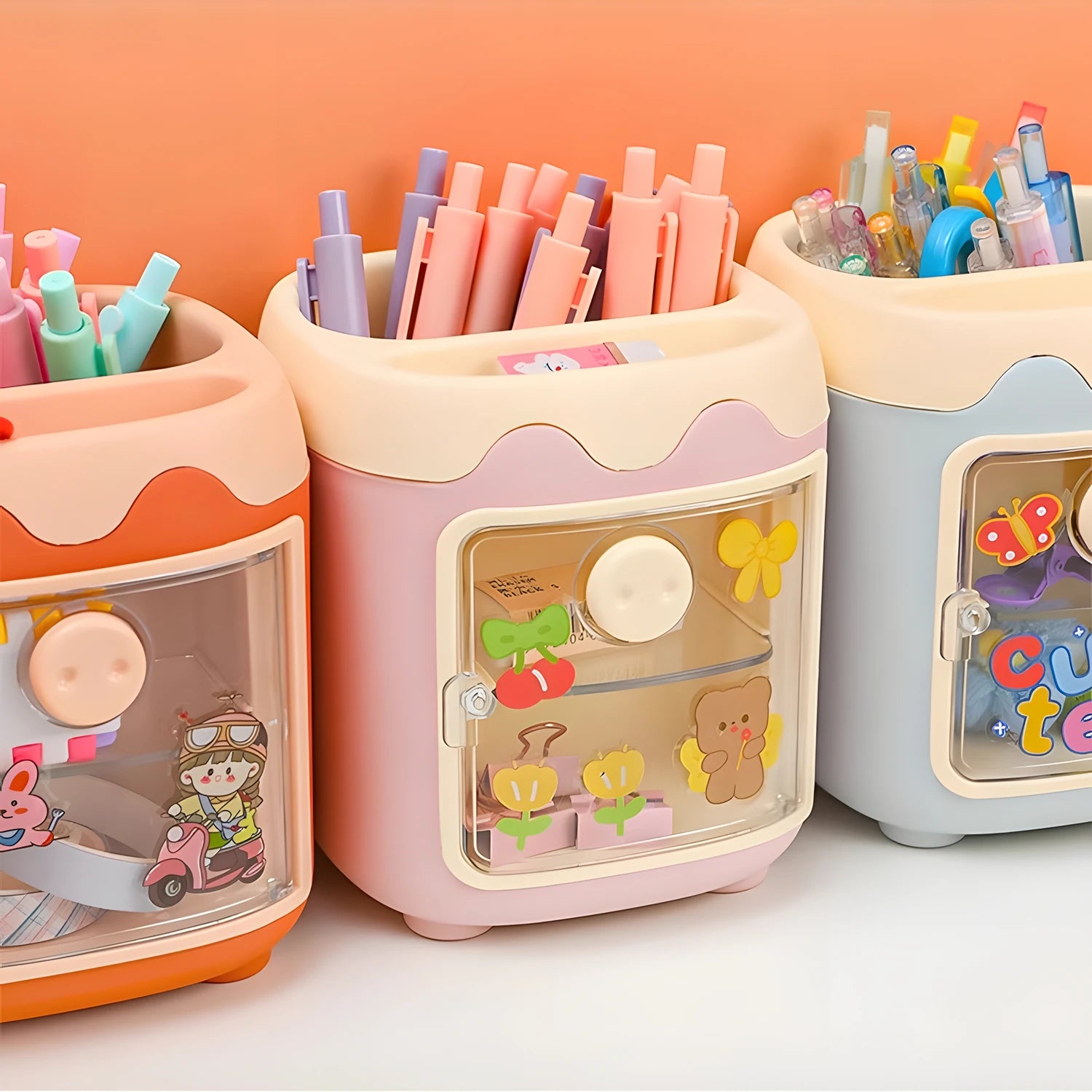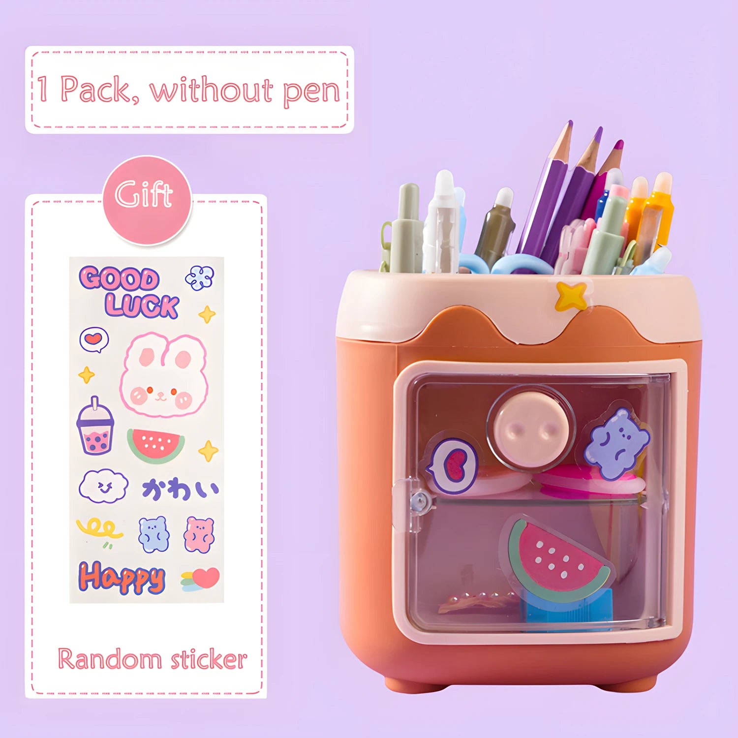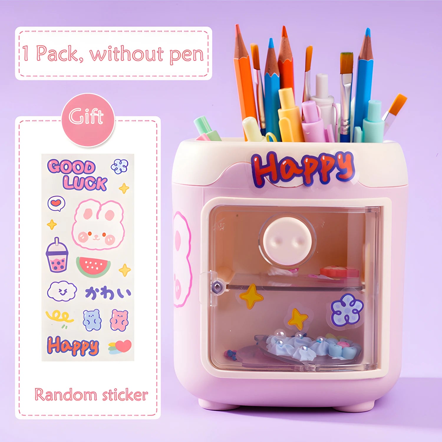 Pen Holder Pencil Organizer with Drawer, Cosmetic Makeup Brushes Holder for Dressing Table, Pig Nose Cute Pen Holder Office
