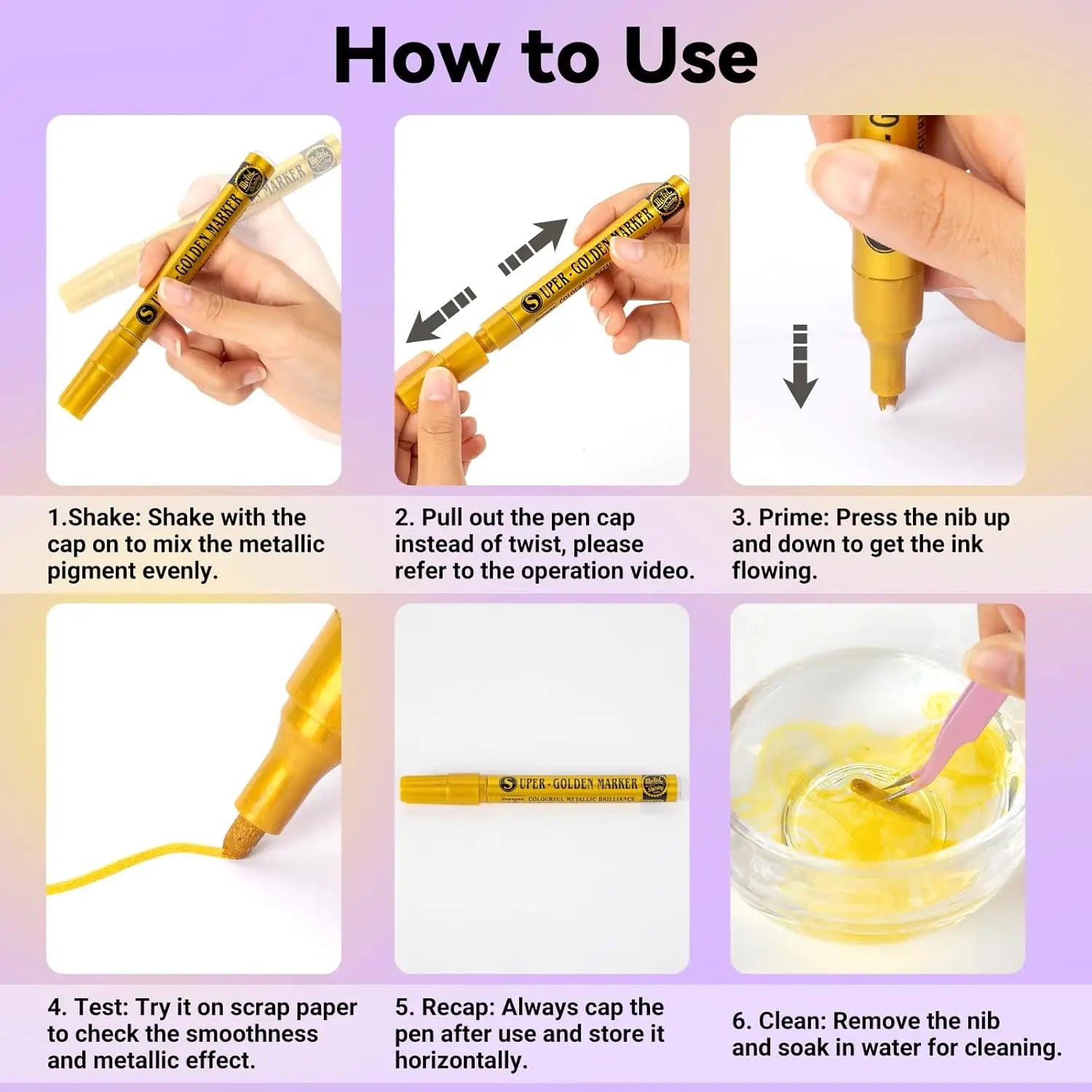 Super Golden Metallic Paint Markers, 12/18 Colors Sparkle Metallic Glitter Markers, Acrylic Paint Pens for Rock Painting, Glass