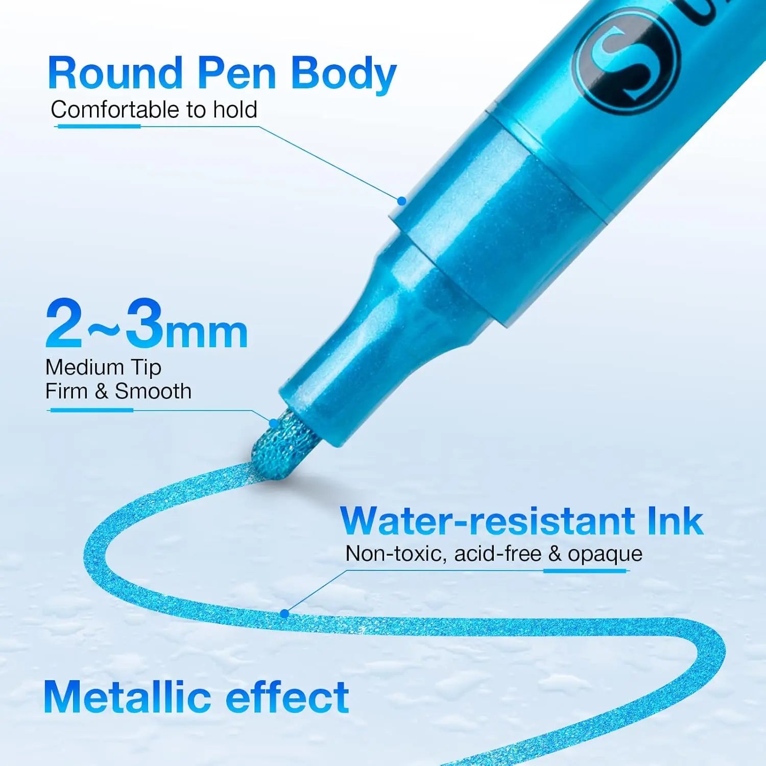 Super Golden Metallic Paint Markers, 12/18 Colors Sparkle Metallic Glitter Markers, 2-3mm Extra Fine Point Acrylic Paint Pens for Rock Painting, Glass, Wood, Black Paper, Scrapbook, DIY Art Crafts